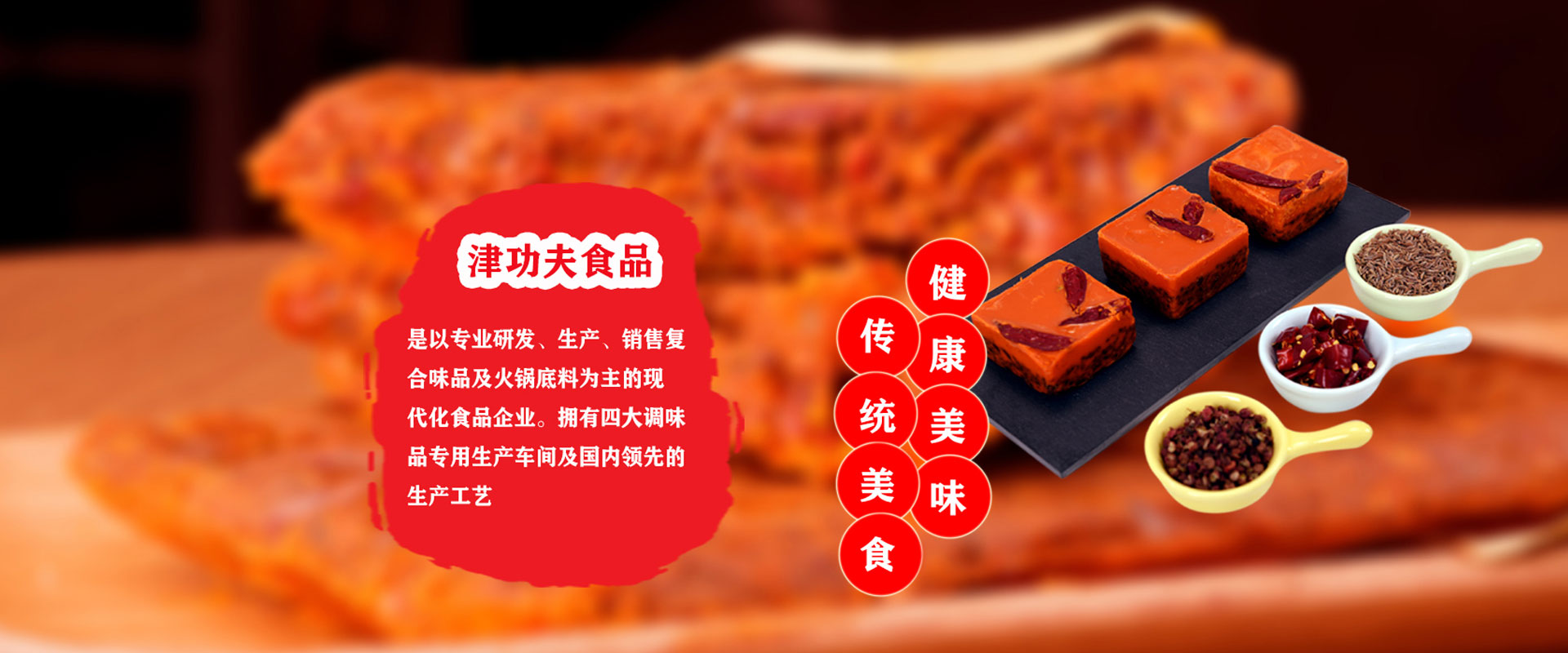 廣東津功夫食品有限公司,位于廣東省肇慶市國(guó)家高新區(qū),占地面積約2.5萬(wàn)平方米,是以專(zhuān)業(yè)研發(fā)、生產(chǎn)、銷(xiāo)售復(fù)合調(diào)味品及火鍋底料為主的現(xiàn)代化食品企業(yè)。      "津功夫"為公司注冊(cè)商標(biāo)。公司擁有四大調(diào)味品專(zhuān)用生產(chǎn)車(chē)間及國(guó)內(nèi)領(lǐng)先的生產(chǎn)工藝;裝備有反應(yīng)釜、電磁炒鍋、天然氣炒鍋、蒸煮生產(chǎn)線、各型號(hào)全自動(dòng)包裝機(jī)、冷封生產(chǎn)線等先進(jìn)生產(chǎn)設(shè)備,年生產(chǎn)能力達(dá)2萬(wàn)噸;配備有微檢、重金屬、金檢、水分、折光等檢測(cè)設(shè)備。        公司依照國(guó)家食品安全法,采用GMP及ISO管理標(biāo)準(zhǔn),已先后通過(guò)ISO-22000質(zhì)量管理體系認(rèn)證、HACCP認(rèn)證。        公司研發(fā)團(tuán)隊(duì)由公司創(chuàng)始人親自帶隊(duì),立足當(dāng)下,不斷創(chuàng)新,將在調(diào)味品行業(yè)20余年的潛心研究成果變?yōu)楝F(xiàn)實(shí),精品輩出,為客戶創(chuàng)造更多、更好的價(jià)值。公司以川味調(diào)味品為根,以客戶需求為本,開(kāi)發(fā)了復(fù)合調(diào)味品及火鍋底料兩大板塊的系列產(chǎn)品。復(fù)合調(diào)味品板塊涵蓋: